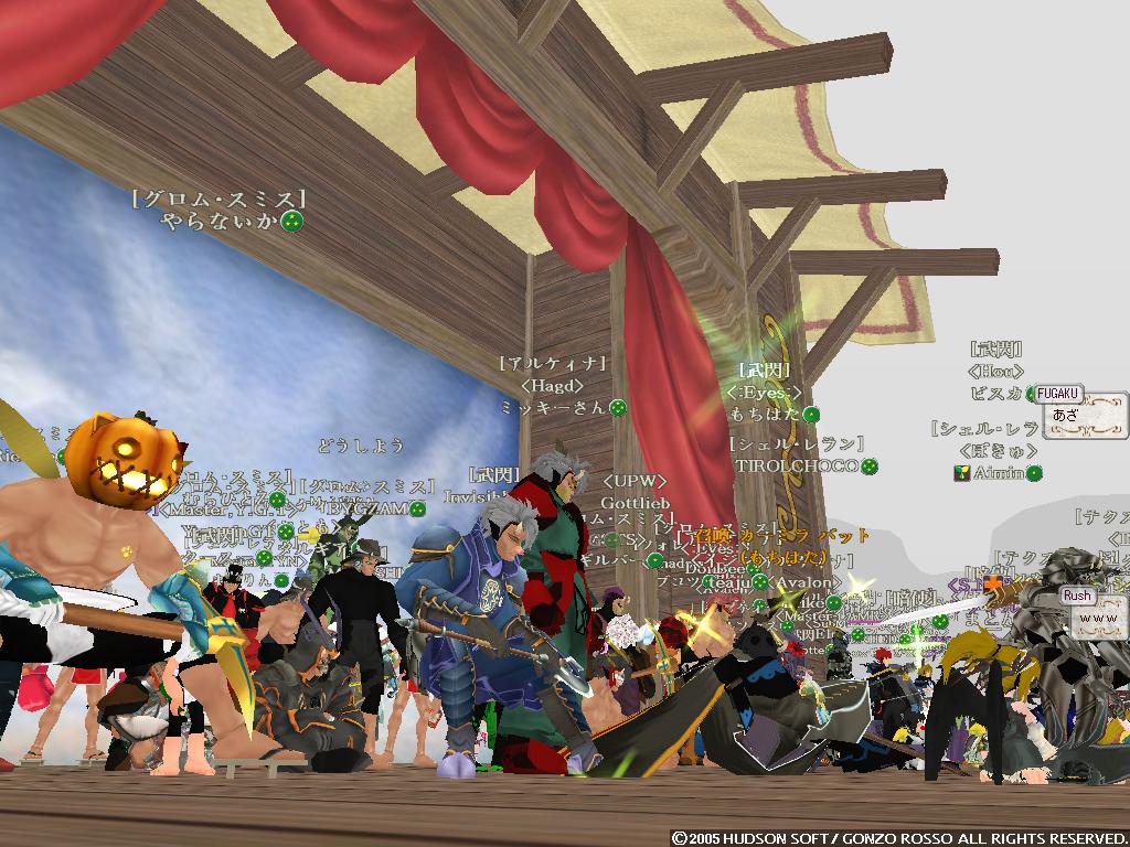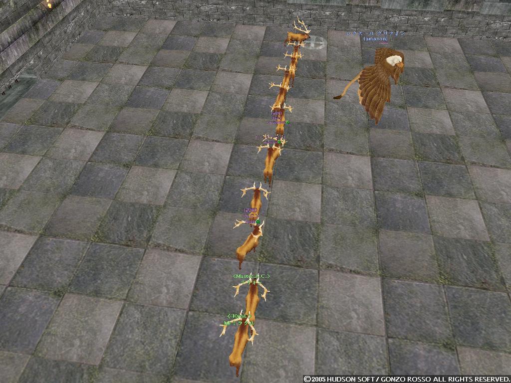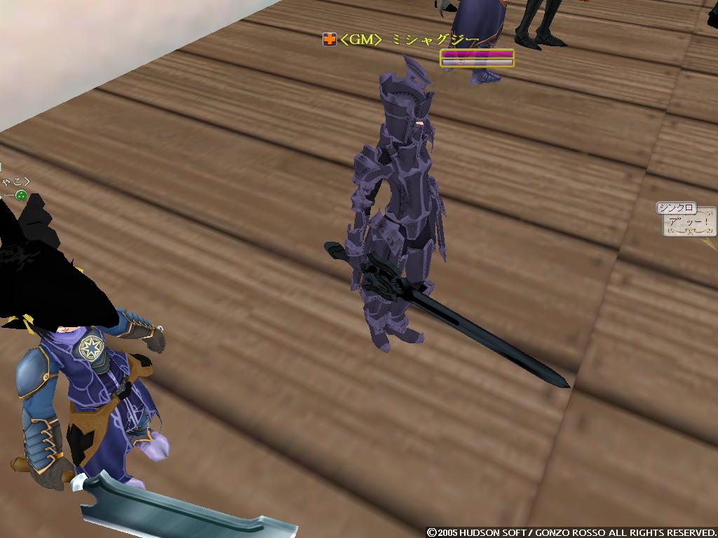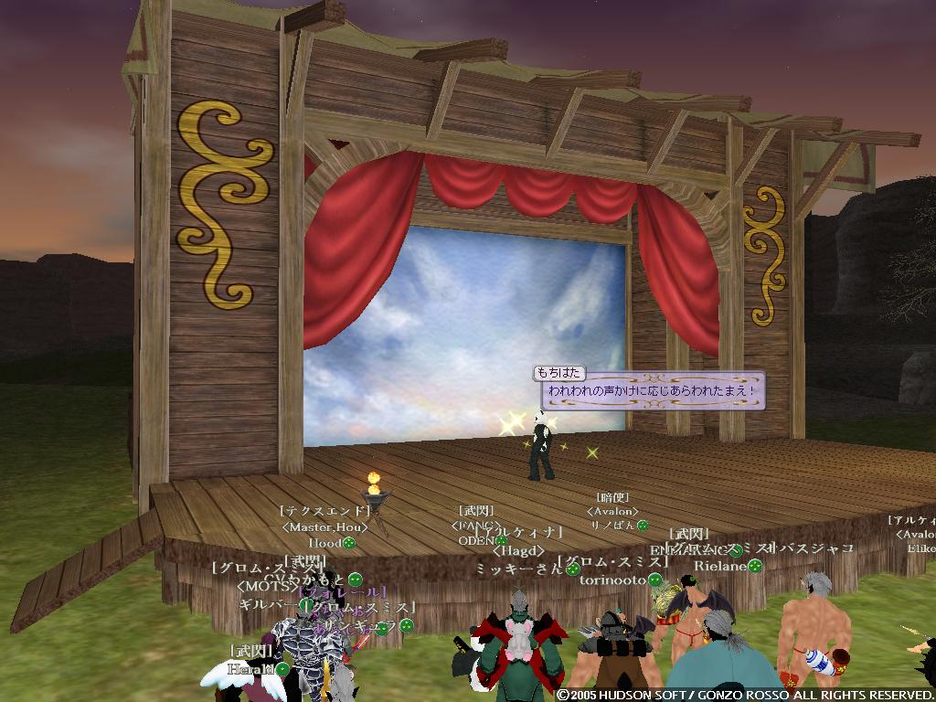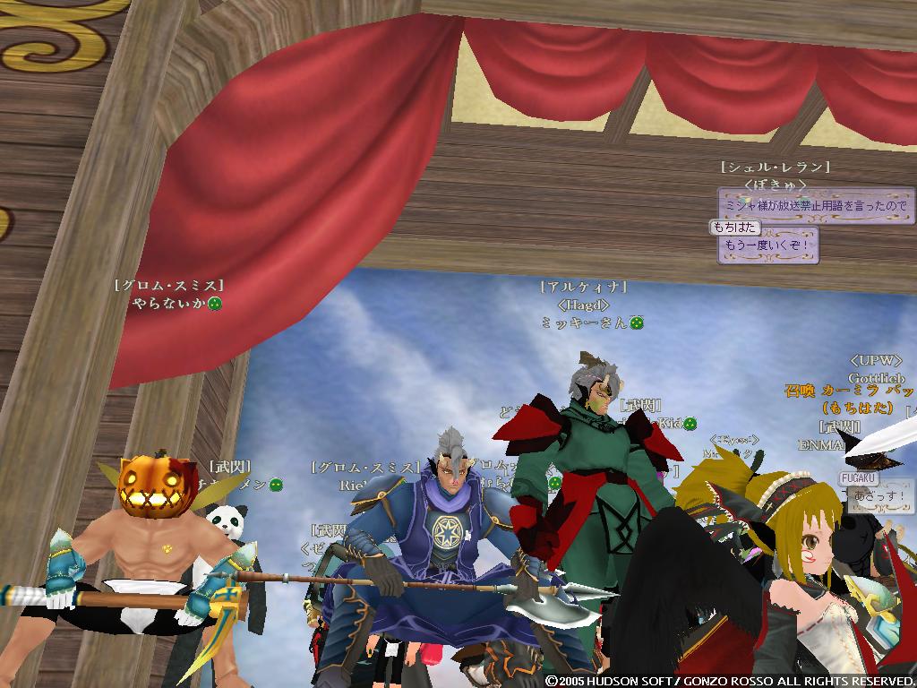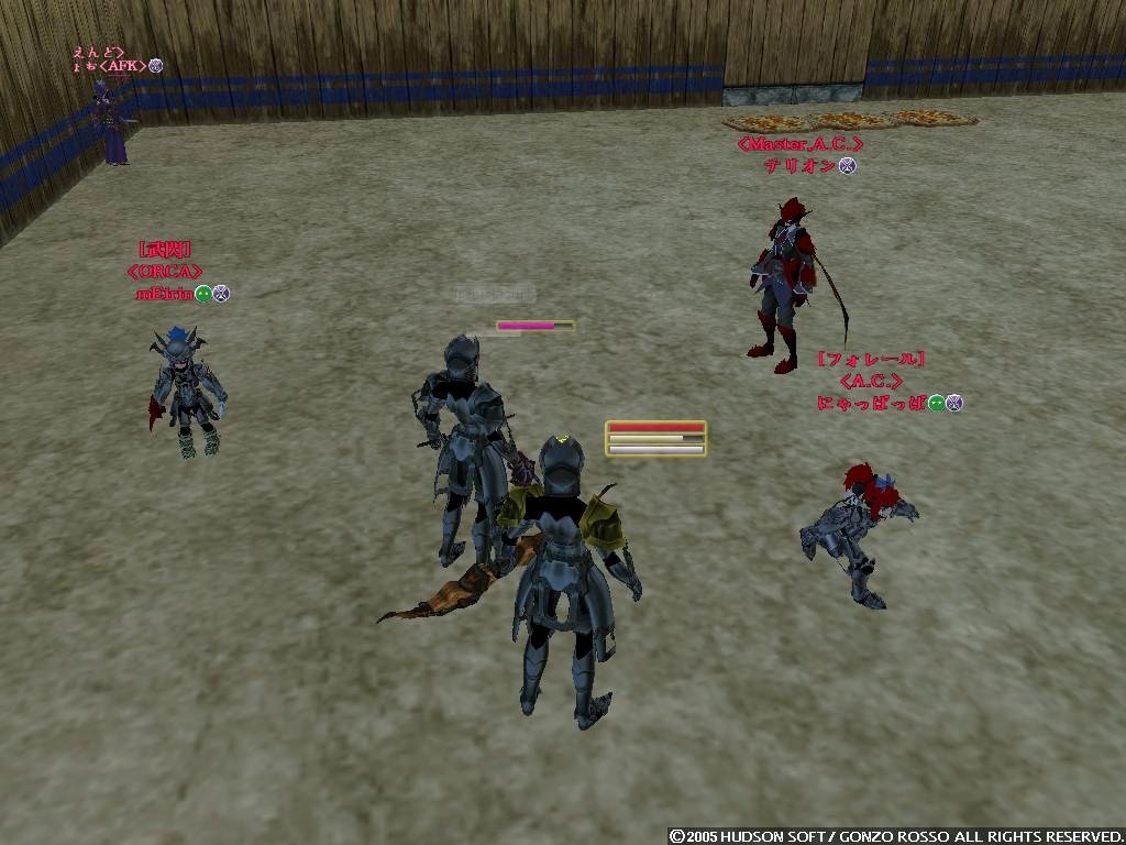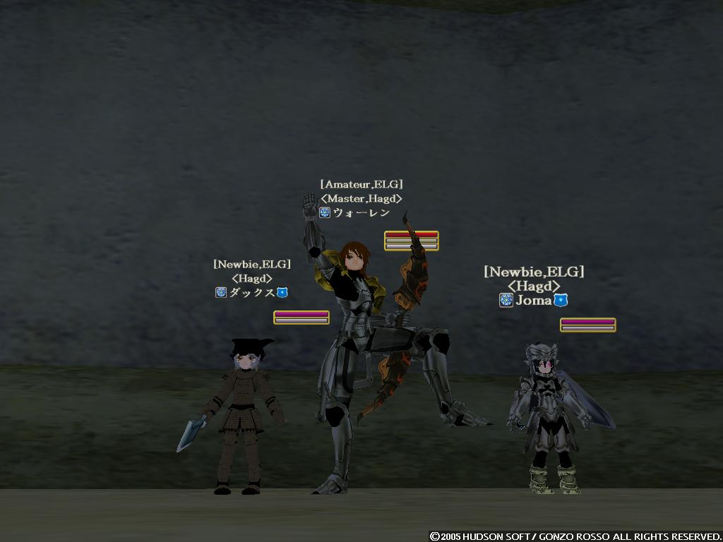 2nd[タックン]:やっとゴレムがミスリルゴレムに進化した2ndの完全支援型テイマー 最近モチベーションがあがってきている 主な使用ペットはミスリルゴレム、グレイブンこんな感じかな イビタンは500Kで売りますたケラケラ 3rd[ラクフェス]:過去をやっと受け入れ釣りキャラとして生まれ変わりそうなモニオ だけどすでに釣りには飽きている 4th[ドミトリィ]:Siestaを辞めHagdの正社員となったがHagdも辞め新しいFSに入ったワラゲ専用キャラ 自然調和を入れたことにより高速機動による追撃、逃走が可能になった なお素手を抜き投げを入れたことで完全に追撃or集団戦専用に しかし投げがなかなか当たらない ちなみにいつもSTかつかつの燃費の悪い子 5th[ウォーレン]:過去はジャスタンを目指したが挫折し暗黒命令と死魔法を取ってしまったジョーカー 死体回収とリープを楽しみに生きている ちなみにMPが100しかないので魔法は一発しか撃てない 6th[アルシエル]:ついに消されてしまった今は亡きヌタオ スマン・・・俺がしっかりしていれば 7th[アイオーン]:ついに手を出してしまったネタキャラ荒くれ者 輝くその体は敵の攻撃をものともせず(ファンタスティックボディ) 敵を打ちのめすその光は爆炎が吹き荒れるほどだとか(フィニッシングエンド) まさしく漢ここにあり (C)2007 HUDSON SOFT / GONZO ROSSO All rights reserved. 株式会社ゴンゾロッソ及び株式会社ハドソンの著作権を侵害する行為は禁止されています。
