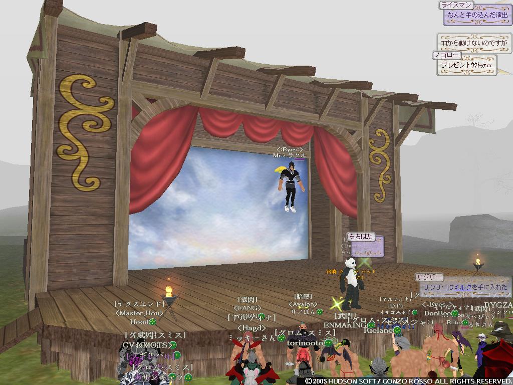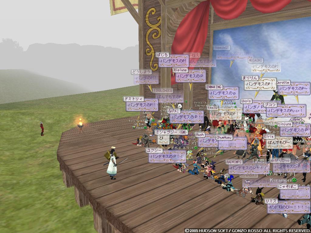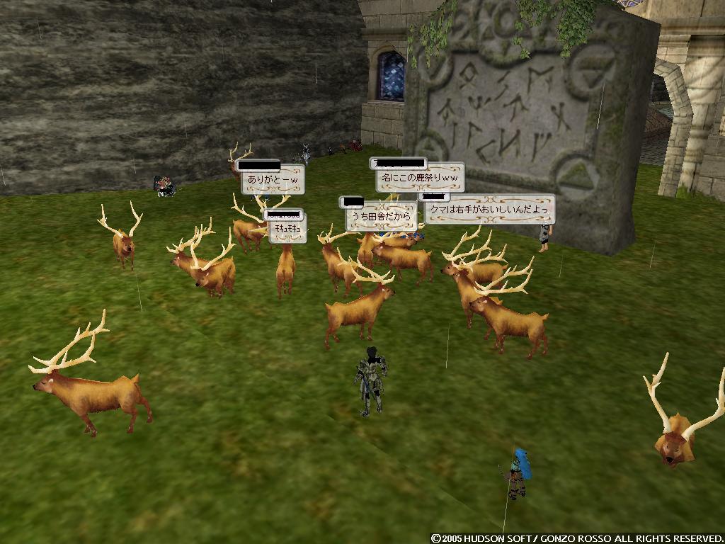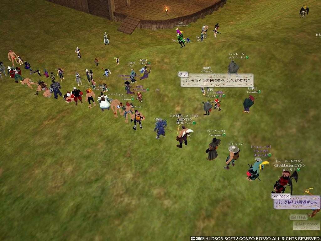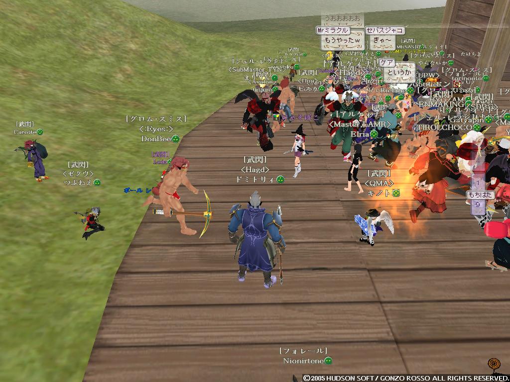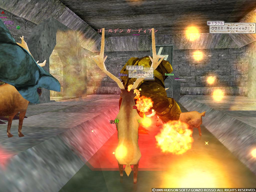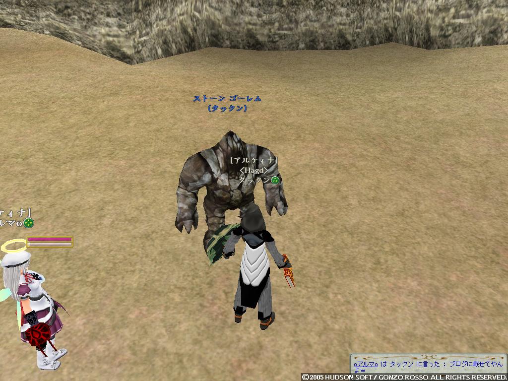 ヒャッフーー ついにうちのゴレムがミスリルに進化しましたよ!! もうね何度挫折しそうになったことか 手に入れたのが2年くらい前だしねww 気分いいので久しぶりにブログ更新しようかと 4ヶ月ぶりかな!? まぁ時が経つのは早いよね!! 気にしたら負けだよBOY! というわけでたまりまくったスクリーンショットで過去の回想でもしようかと はい一枚目 あぁ鹿ガイアツアーの時かな だいぶ無茶をした記憶があるな・・・ ゴレムを蹴り飛ばす鹿たちカワユスw ガイアと戦ってるSSがないΣ しまったなぁ・・・まぁ気にしない 配給を待つ鹿の図 やっぱかわいいww ちなみに俺は最後のほうで報酬は・・・ 大豆でした まぁ健康的でいいんじゃないかなウン ちなみにこれらは二ヶ月以上前のSSだから ドミィの構成もずいぶん変わってるのさ こんな感じに!! 自然調和をとって 超高速機動型PANDA になったのだよ いやぁ逃げ足も追撃も楽になってね 盾上げにタイタンに行って鳥につつかれたりもしたさ おかげで盾も使えるようになって スタン→デッドリーホロウ こんなことができるように・・・ なってませんハイ ソードダンスで倍返しなんだよね・・・しかもダメージ3桁 戦うことに疲れてしまったので なんとなく釣りをあげてみた けどやっぱりすぐ飽きた!! だって暇なんだもの・・・ さて最後のSSは・・・ おぉHagdの顔合わせの時のSSだな 俺がLDしまくりながらも頑張ってたあの時の・・・ ちなみにこれは6月28日にとられたものらしい もう3ヶ月前か~ 今ではほとんど人がいなくなって寂しい限りだなぁ こうなったら増やすか!! 月がきれいだなぁ・・・ いきなり意味不明な発言をしているタックンでした。 いや実はさ風邪引いちゃってて 寒気や頭痛するけど泳いできたというねw 悪化しますたorz さてさてさいきんの出来事といえば・・・ にぃが60Kで買ったシカせんべい無料配布ってとこかなぁ 金もちだなにぃ 俺は途中でゴキブリーとか言われてイジメられてたよ・・・ ブラムストーカー装備はコオロギでs ゴキブリではありませんっ!! 増えてるよ・・・ ナンテコッタイ でも何人かの人とは仲良くなれたよb モニコとパンダが仲間になった。 パンダは貴重だよねウン モニコは俺以外のメンバーみんなモニコンだよウン 生暖かく歓迎しよう!! 頭がボーっとしてうまく記事が考えられない・・・ 昨日のバザーの様子 あいかわらず賑わってるなぁ~ 昔は俺もイロイロ売ってたけどね 攻撃回避賢者石500Gとかね( ・ω・) 今回は楽しむ側にまわることにしよう 特価とか言っておきながら値段上がってるのがいくつか・・・ うん? ソラ君が人間大砲を灯台でやってるとかで 俺も行ってみることにしたb 飛翔式PANDA まぁ地面にぶつかってグシャッっとなったんだけどねっ よく見たら多段マッスルだしww 昔はよく遊んだなぁ・・・ そして金稼ぎかねてタルパレにだっくすといくことにしますた タイフーンがいる橋 この後ルーク狩ってたら 上の段のコグ姉さんがタイフーンをワザと俺たちにぶつけやがりましたです ダックスは落とされ俺も瀕死にっ 上でなんか顔文字使ってるコグ姉さんはきっと性根腐ってやがりますでしょうなっ まぁ俺がセンスレスでなすりつけ返したんだがねっ しかし回避強化弓のようで 普通にタイフーン倒してた・・・ ムカツク奴・・・ ちなみに高機動パンダ目指して自然調和とりますたw