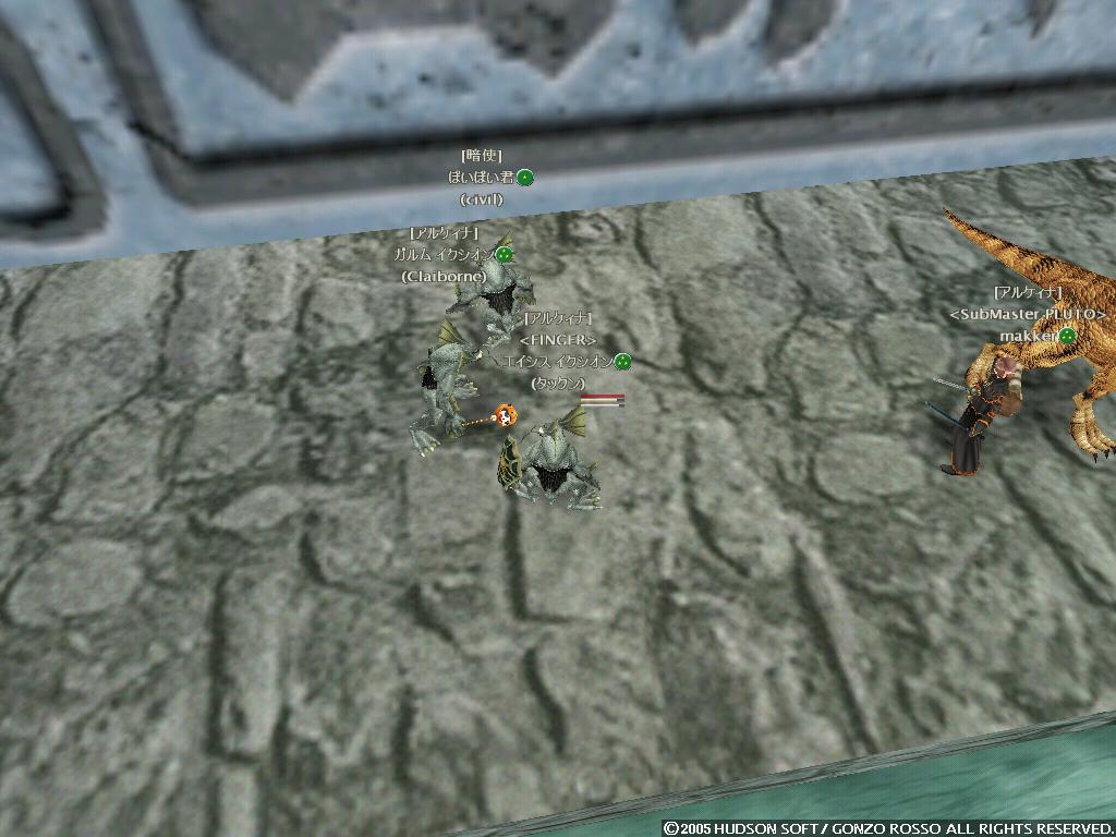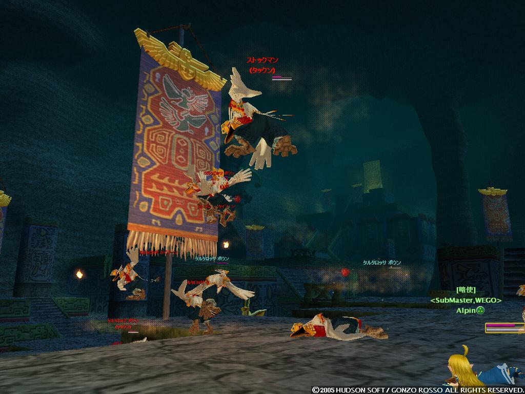 はいテイマーサン集合w ここにいるとホントテイマーが群れるなぁ またまた雑談w そしてPOP待ったけど・・・ 結局湧かずorz なんなんだ一体・・・これはドオイウコトナンダ 本当に湧くのか?魔タル・・・ しょうがないからイッチョンにドミニオン!! やっぱテイマー同士で遊ぶのは楽しいw その後タックでニクス銀貨を集めに墓地行って あっさり集まったよ・・・ 前はかなり時間かかったのになぁ・・・ で、マスターのサブにニクス銀貨と金貨を渡して・・・ って渡せてないw CCしてから気づいたorz 気を取り直してもう一度 受け渡しを確認して・・・よし!! いざCC!! ドミなんか地下墓地最下層にいるんですが^^; パンダダーッシュw ダーッシュ・・・おぉ!? なんかデスナイトが空を飛んでるw すげぇ・・・と思ったらなんか下の階からトレインボウヤが・・・ デスナイトしつこいw なんか普通に銀行の近くまでトレインしてるんですがあのボウヤ とりあえず見殺しにして ぇ マスターから銀貨の受け渡しをしてもらっていざ闇商人の下へ!! 闇商人の所にいくまでに4回も死んだ・・・ 象に追いかけられて崖から転落orz wikiで闇商人の出現時間調べてると象が湧かないところに象がいてアボーンorz 闇商人がいる滝壺へダーイブ・・・ハイ着地失敗orz 闇商人発見!!・・・ハイ殴られるorz まぁSB頼んでも囮スキルが下がったからいいけど イルヴァナまで戻るのめんどくさすぎw でグリフォンにでも会いに行ってみるかと思っていざ出撃!! 風船?なんだこれ? って首をかしげていると・・・なんか見たことないグリフォンにフラップ喰らって崖からポ~ン 453ダメジ 耐えることができませぬ・・・ まぁまた行くしかないかぁ |