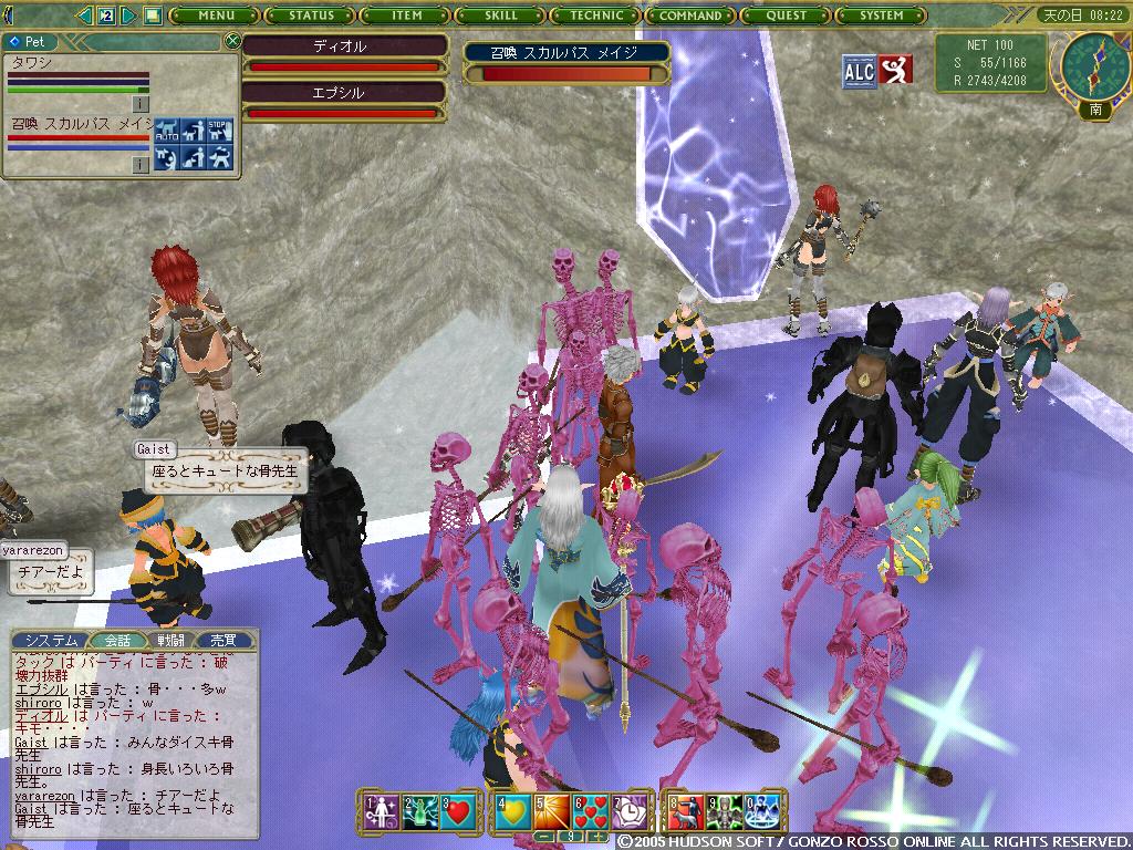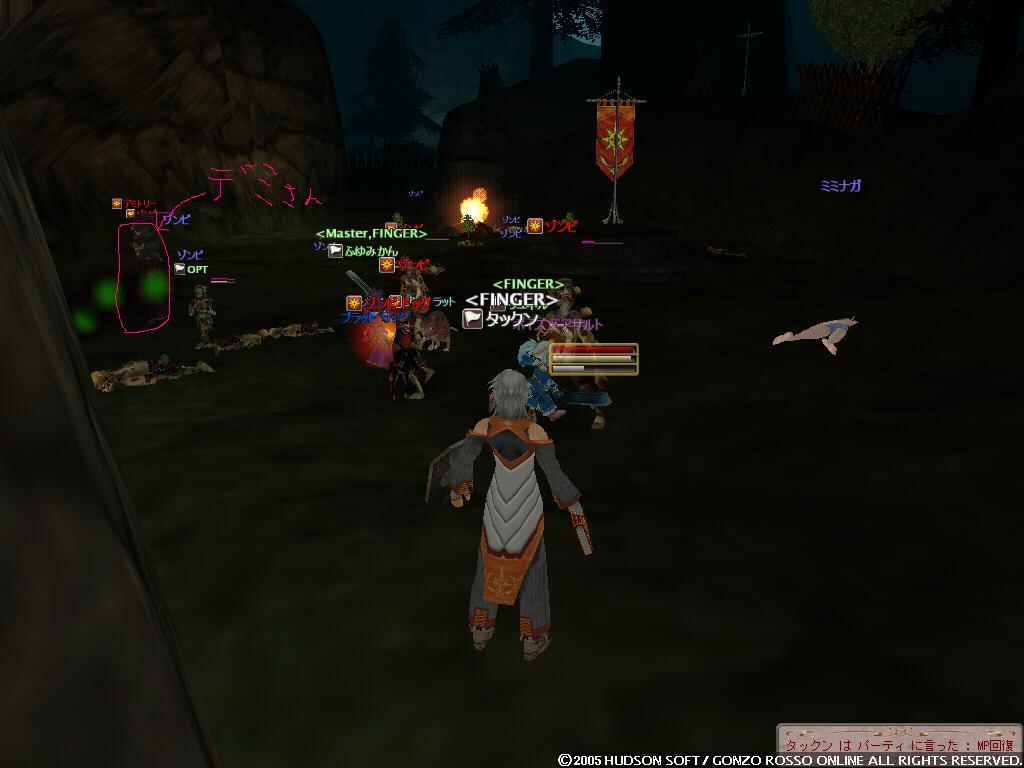2nd[タックン]:やっとゴレムがミスリルゴレムに進化した2ndの完全支援型テイマー 最近モチベーションがあがってきている 主な使用ペットはミスリルゴレム、グレイブンこんな感じかな イビタンは500Kで売りますたケラケラ 3rd[ラクフェス]:過去をやっと受け入れ釣りキャラとして生まれ変わりそうなモニオ だけどすでに釣りには飽きている 4th[ドミトリィ]:Siestaを辞めHagdの正社員となったがHagdも辞め新しいFSに入ったワラゲ専用キャラ 自然調和を入れたことにより高速機動による追撃、逃走が可能になった なお素手を抜き投げを入れたことで完全に追撃or集団戦専用に しかし投げがなかなか当たらない ちなみにいつもSTかつかつの燃費の悪い子 5th[ウォーレン]:過去はジャスタンを目指したが挫折し暗黒命令と死魔法を取ってしまったジョーカー 死体回収とリープを楽しみに生きている ちなみにMPが100しかないので魔法は一発しか撃てない 6th[アルシエル]:ついに消されてしまった今は亡きヌタオ スマン・・・俺がしっかりしていれば 7th[アイオーン]:ついに手を出してしまったネタキャラ荒くれ者 輝くその体は敵の攻撃をものともせず(ファンタスティックボディ) 敵を打ちのめすその光は爆炎が吹き荒れるほどだとか(フィニッシングエンド) まさしく漢ここにあり (C)2007 HUDSON SOFT / GONZO ROSSO All rights reserved. 株式会社ゴンゾロッソ及び株式会社ハドソンの著作権を侵害する行為は禁止されています。