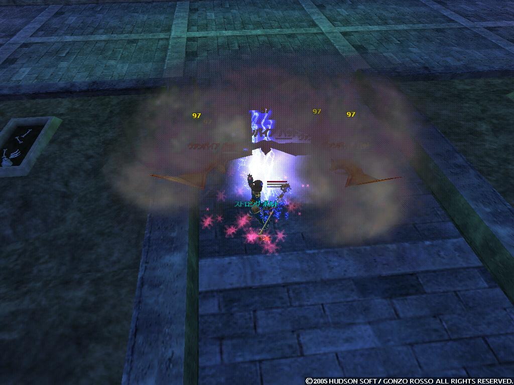 あ、必要なのは金貨じゃなくて銀貨なのね^^; 昨日必死にシーウルフ狩ったのに・・・ と言うわけでやってきましたムトゥーム地下墓地w こうなったら地道にロッソ狩って手に入れるしかないか・・・ 地道に・・・ 地道に・・・ なんか疲れちゃったよ・・・ ロッソさん地味にイタイorz 思わず墓の前に座り込んじゃったし 墓を見つめてナニを思うパンデモよ・・・ 埒が明かないのでCCして久しぶりにタック登場!! メインなのに出番少ないなぁ・・・ アイテム集める時しか使ってないような気が・・・ まぁそれは置いといてw しかしタックでやると早い早い アイスボール3発で死ぬからコストもかからないし 思わずコウモリ集めて・・・ 範囲魔法炸裂w 本当は光ってる所撮りたかったんだけどね・・・ まぁそれから2時間ほど頑張ったんだけど 結局出たのは金貨3枚銀貨4枚 まだ6枚も足りないじゃん・・・ 明日もまたコツコツとやっていくしかないねぇ~ つかドミのナッコォがぶっ壊れた事件w フフフ予備が・・・あるわけねぇじゃんorz また友達に作ってもらうしかないね・・・